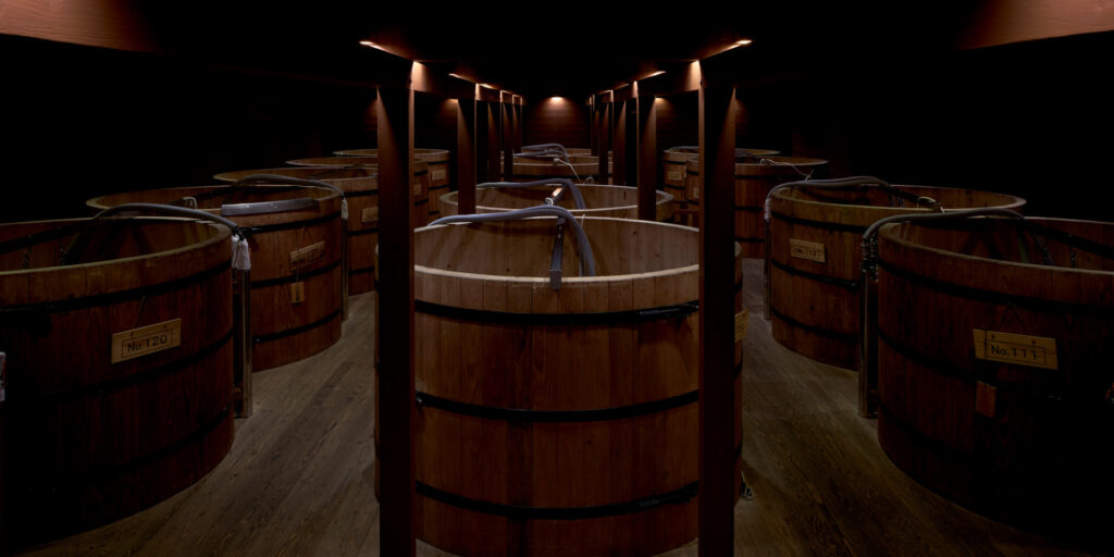 - 木桶発酵:金属タンクではなく木桶で発酵させることで、微生物が生み出す複雑な香味を育む。